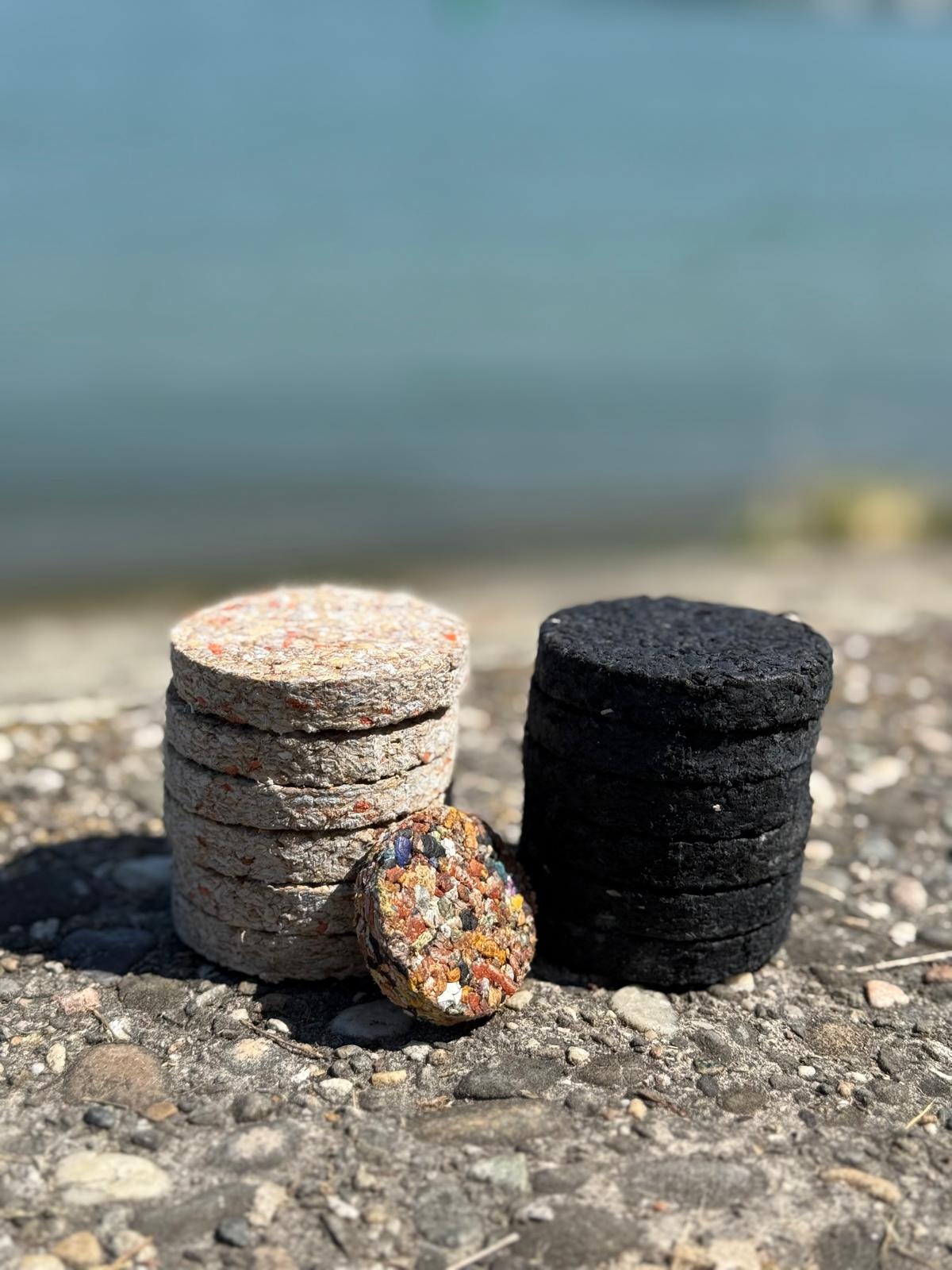 Palets aus recyceltem Leder oder anderen Upcycling-Materialien (Muscheln, Textilien usw.), ideal für das Spielen im Innen- und Außenbereich. Diese Paletten sind leise, langlebig und ein Beispiel für echte Kreislaufwirtschaft.